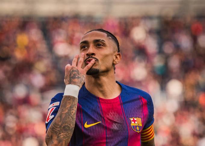 在周日晚进行的西甲第28轮巴萨主场对阵塞维利亚的比赛中,拉菲尼亚在第21分钟完成点球梅开二度,下半场第51分钟再进一球,帮助巴萨取得4-1领先,并且完成了帽子戏法。